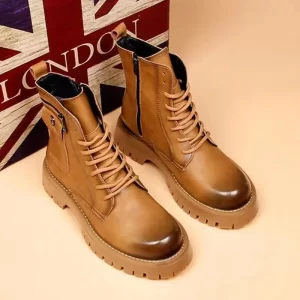 Martin boots men's high top British style workwear made of genuine leather retro winter with plush premium feel thick sole